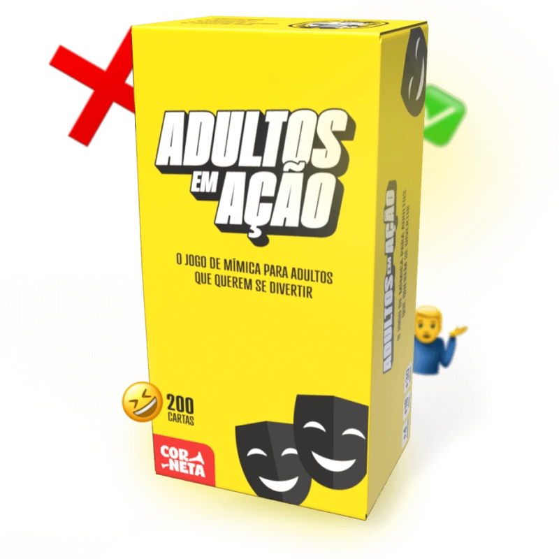No Adultos em Ação, cada rodada é uma nova chance de rir e se divertir. Perfeito para animar qualquer encontro, esse jogo transforma noites comuns em momentos de pura alegria e descontração.